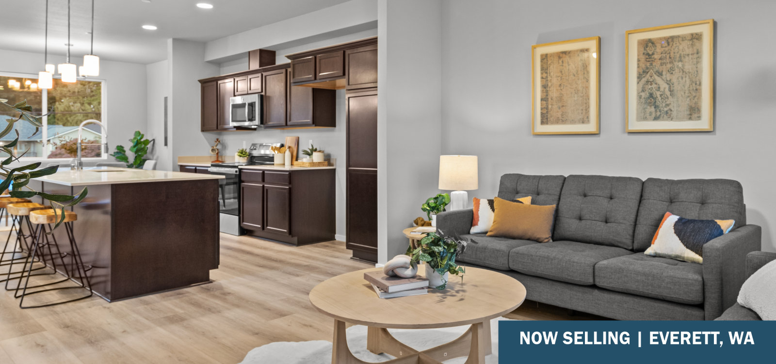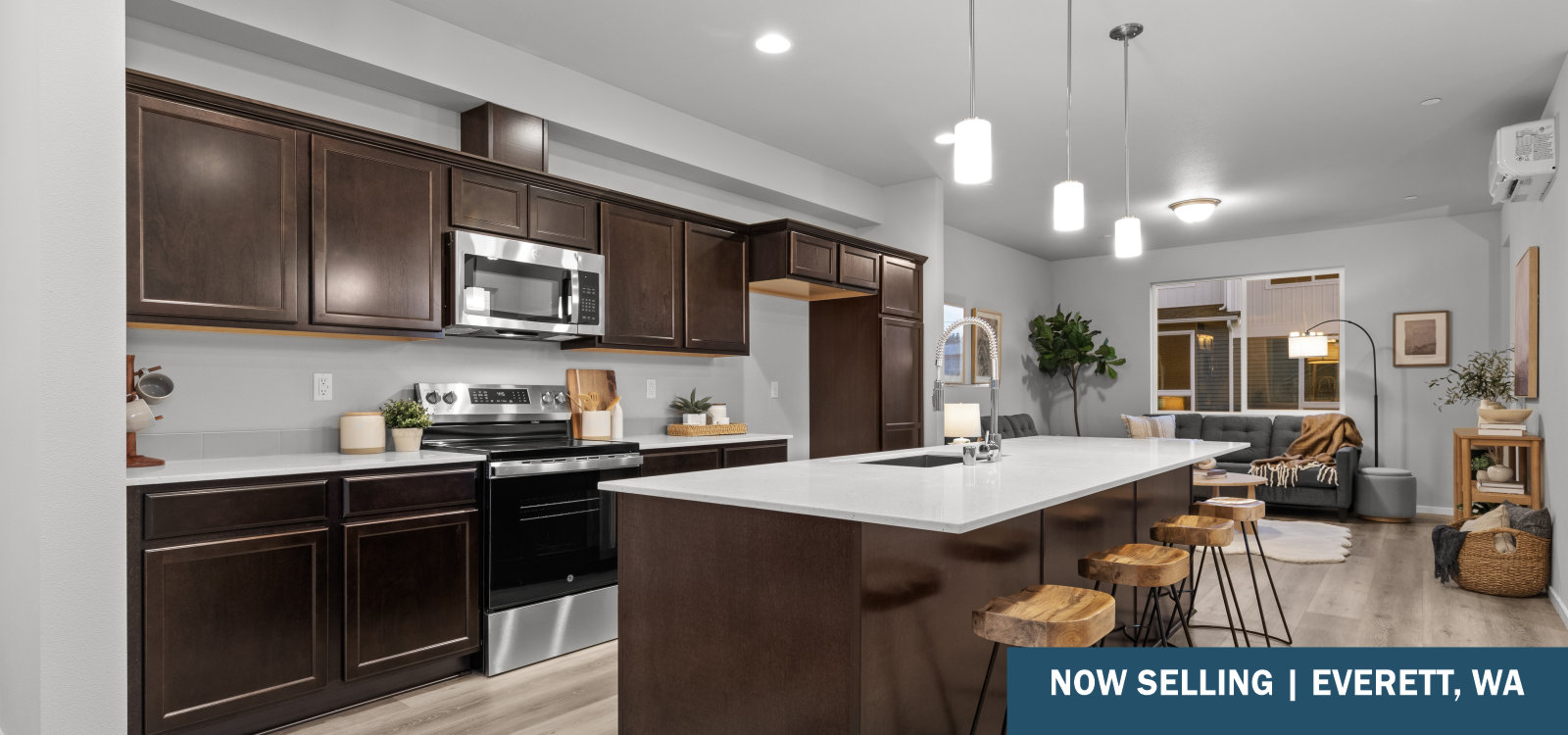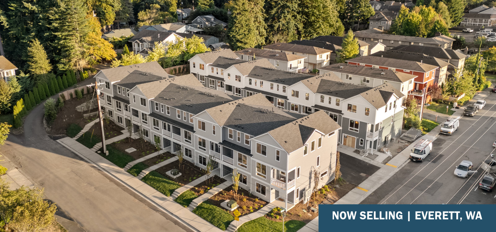Now Selling – New Townhomes in Everett, WA – Discover the perfect blend of convenience and comfort at Rainier Townhomes. Nestled amongst the scenic waterfront parks of the Puget Sound and the thriving city of Everett, this community offers easy access to both nature and your weekday commute. Minutes from the Paine Field Airport, Everett Mall, and local dining and shopping, you’re never far from where you need to be. Enjoy Pacific Northwest living year-round with a covered front porch and covered deck, perfect for relaxing rain or shine. These highly anticipated townhomes feature quartz kitchen countertops, timeless finishes, and thoughtfully designed floorplans. Explore your possibilities today! Enjoy the benefits of NEW! New home warranty, energy efficient, lower maintenance, updated safety & modern lifestyle design elements.