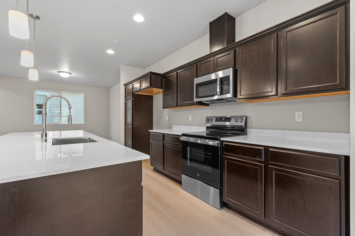 Welcome to the Delta. This townhome makes the most of every inch. On the lower floor, a private bedroom provides the perfect space for guests or a home office. The deep garage provides plenty of room for storage and parking. On the main level, the open-concept kitchen and living area features a large island, stainless steel appliances, and quartz countertops. Direct access to the deck provides year-round enjoyment of the outdoors; while the full bathroom on this level adds extra convenience for hosting. Upstairs, the owner’s suite includes a walk-in closet and a dual-vanity bathroom. An additional bedroom and full bath on the upper floor provide room to grow. With its thoughtful layout and contemporary finishes, this home offers the perfect balance of comfort, convenience, and style.