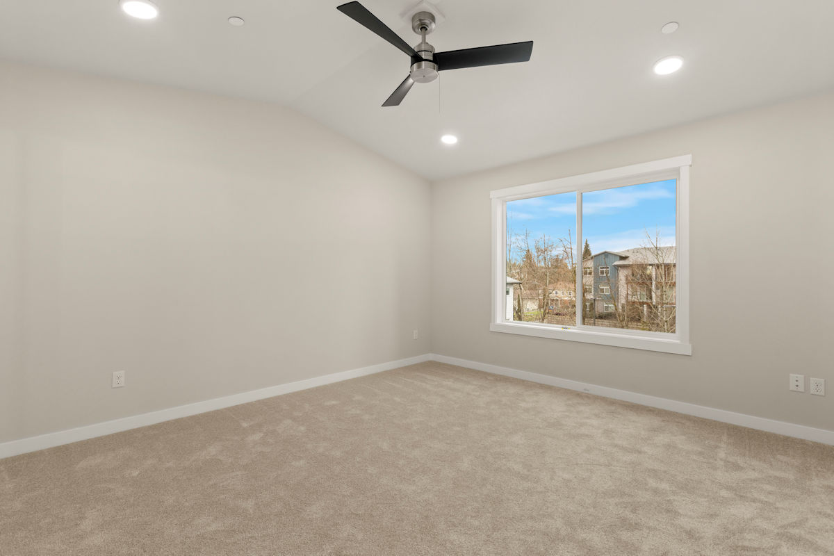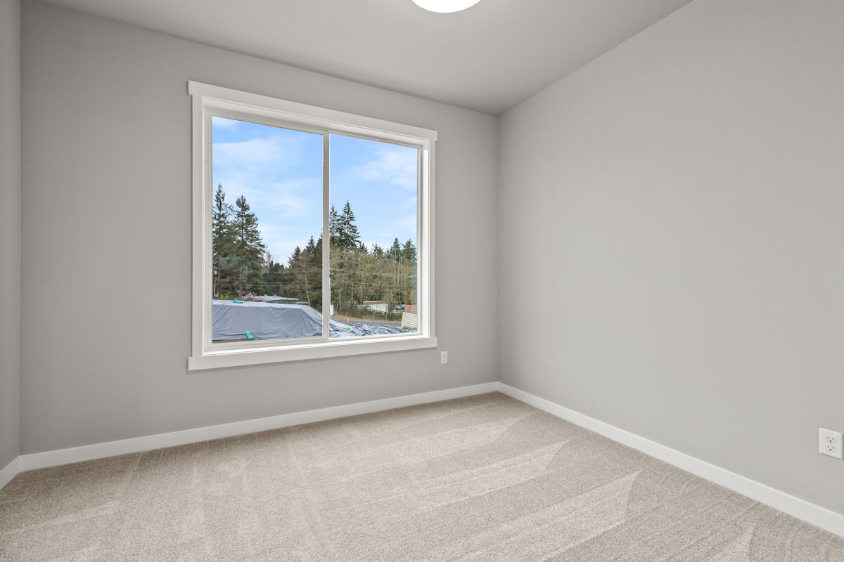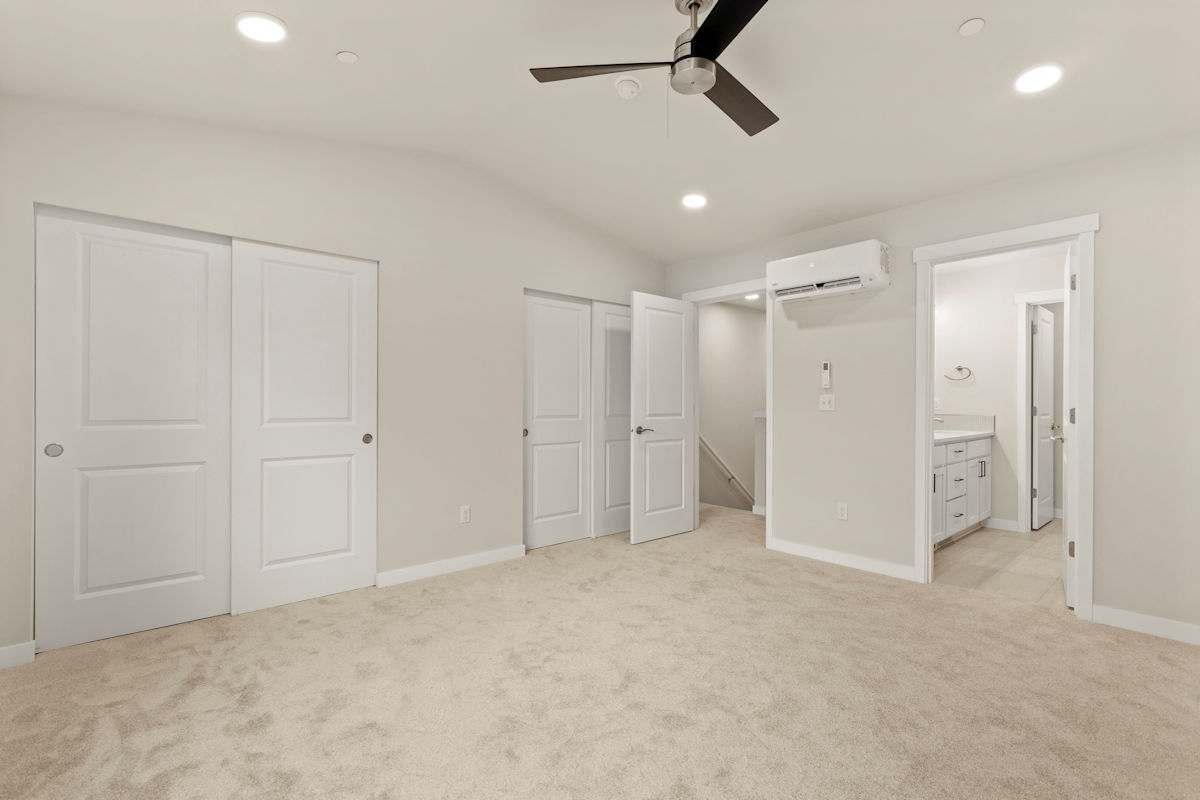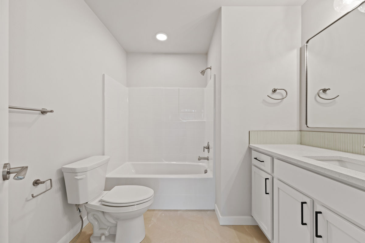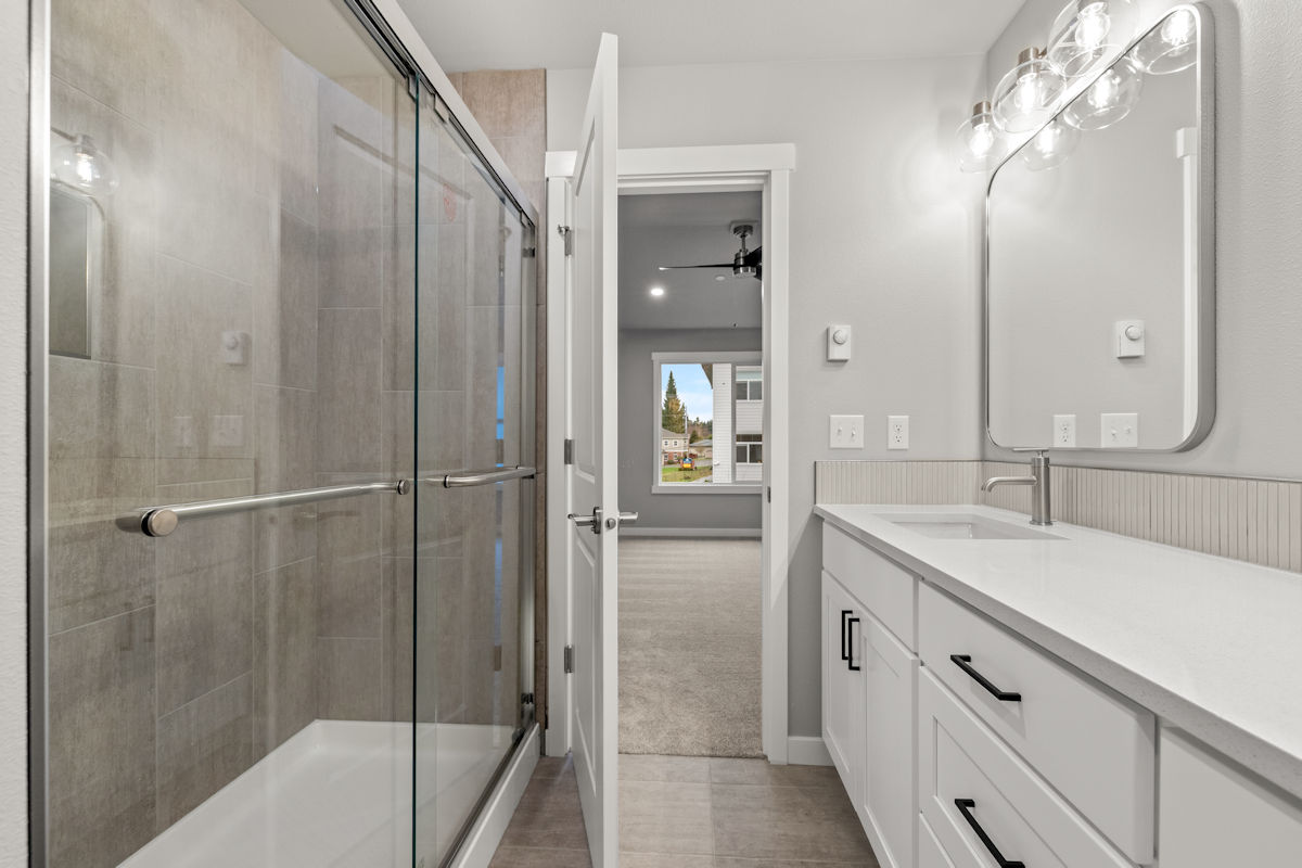 - Quartz slab countertops, double sinks, tile flooring, tile shower, & dual showerhead system in owner’s suite