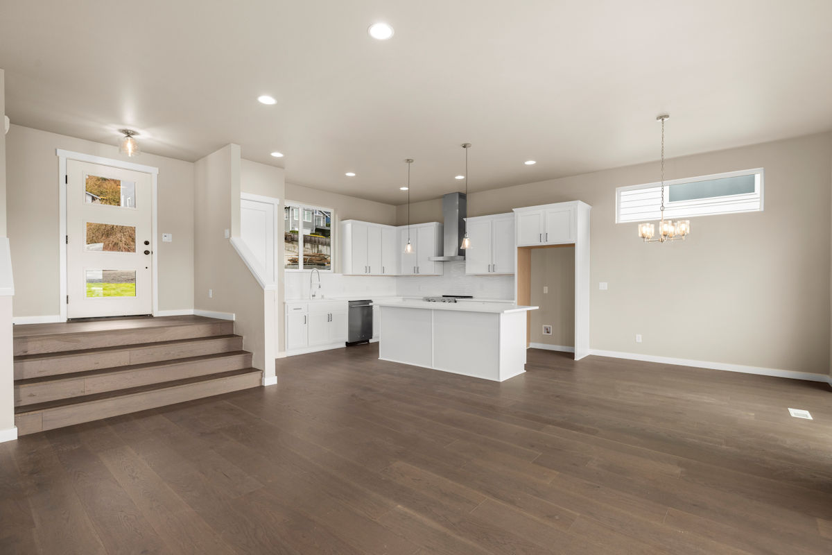 - Gorgeous engineered hardwood flooring at kitchen, dining, great room, & owner’s suite